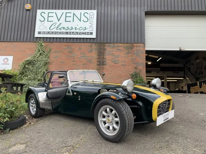 We have here a beautiful original Caterham Supersprint with just a smattering of sensible upgrades. Horsepower is up to 150 bhp, the gearbox has better ratios, the suspension is adjustable and the exhaust has been swapped out for a Raceco one. Finished in Racing Green with a yellow bonnet stripe and noseband, this little pocket rocket is perfect for those sunny day trips to the seaside.
